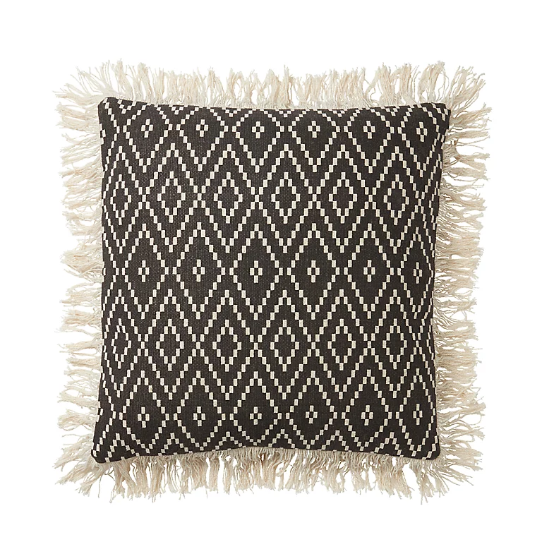 Coussin tissé Blooma Denia noir et blanc 45 x 45 cm