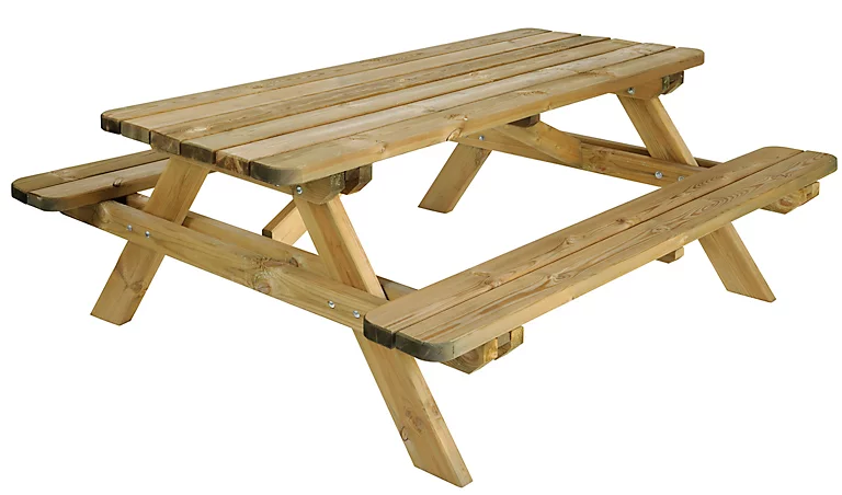 Ses lignes simples alliées à une solidité certaine font de cette table pique nique un incontournable de votre aménagement extérieur. Elle vous permettra de profiter pleinement des beaux jours. Un encombrement réduit et malgré tout une capacité pour 6 couverts. Le bois est traité autoclave cl.3